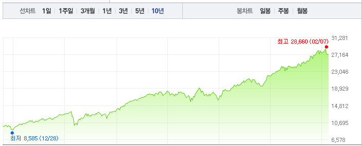 그 덕분인지 국내상장된 이래로 10년 차트만 보아도 꾸준히 아름다운 우상향 곡선을 그려주고 있습니다.