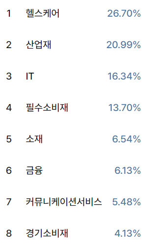 구성하고 있는 종목의 Sector의 비율은 다음과 같습니다.