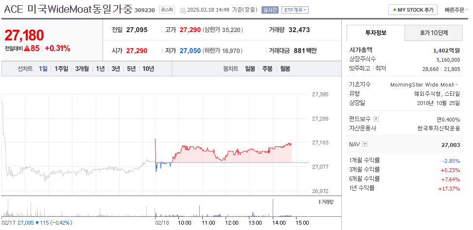 ACE 미국WideMoat동일가중 분석하기